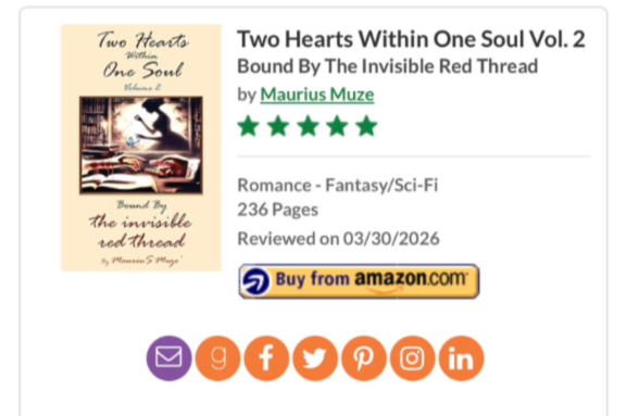 “MauriuS Muze’ writes a breathtaking addition to Two Hearts Within One Soul. Volume 2 is another timeless love story that stands entirely on its own, yet carries the same haunting grace. What’s most fascinating of all is the author themself may remain a quiet mystery to readers. They hold a presence as elusive and captivating as their words. There’s such fun in guessing who they might be. How refreshing, how rare.”